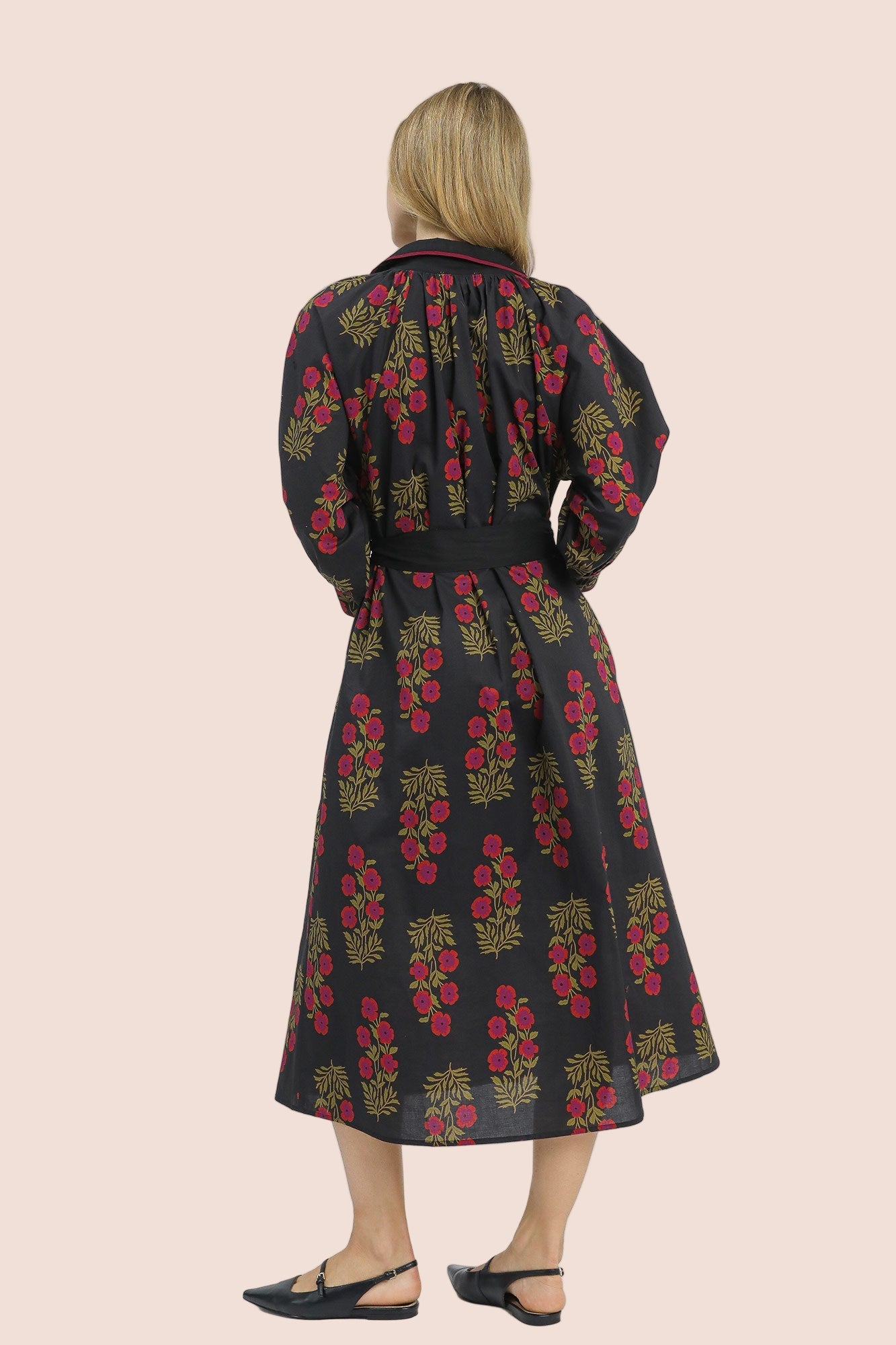 Floral Button-Front Maxi Shirt Dress with Waist Tie