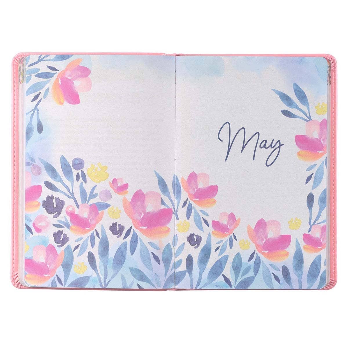 Heat debossed creeping vine design, Pink faux leather, Flexcover, Gold foil accents, 396 gilt-edged pages, 366 devotions, Full-color interior, ESV text, Ribbon marker, Size: 7.2" x 4.7" x .9" (183 x 119 x 23mm)