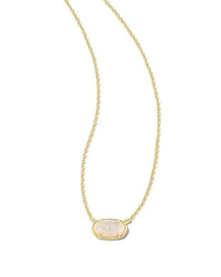 GRAYSON STONE PENDANT NECKLACE GOLD IRIDESCENT DRUSY