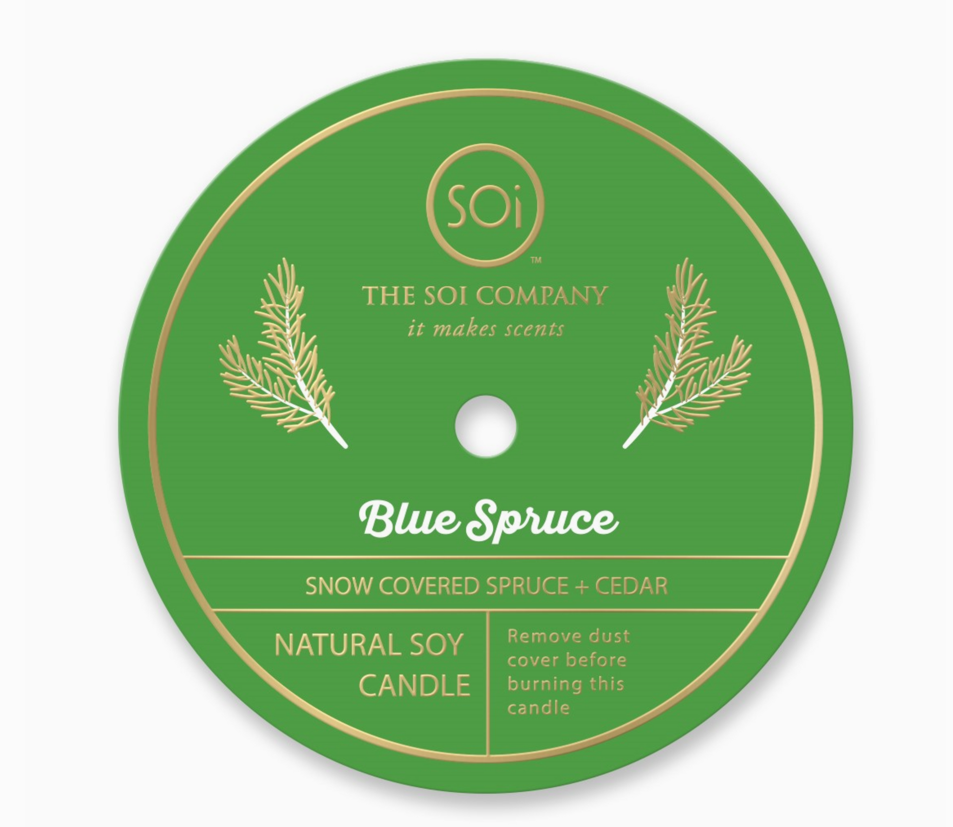 Holly Jolly 12oz Confetti Icon Candle - Blue Spruce fragrance notes: Snow Covered Spruce and Cedar. Holly Jolly” is an instant mood-lifter—the kind of candle that makes rooms twinkle with merriment.