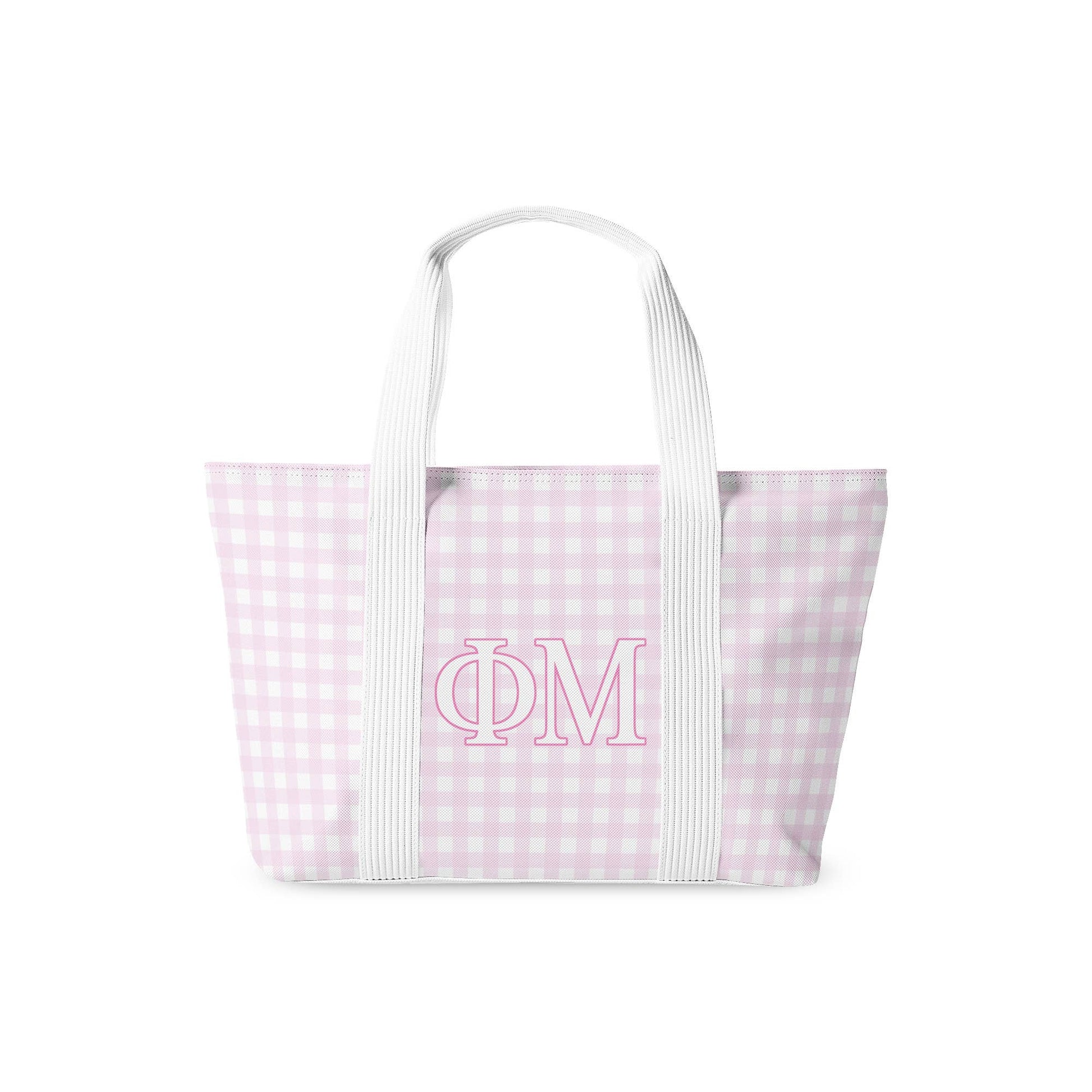 Our Sorority tote bag is a sweet and stylish staple for any member of the sisterhood! Featuring a gingham print and vibrant embroidered Greek letters, it’s perfect for adding a pop of sorority pride to your day. With three interior pockets, this tote is both cute and practical—ideal for everything from class to weekend adventures.